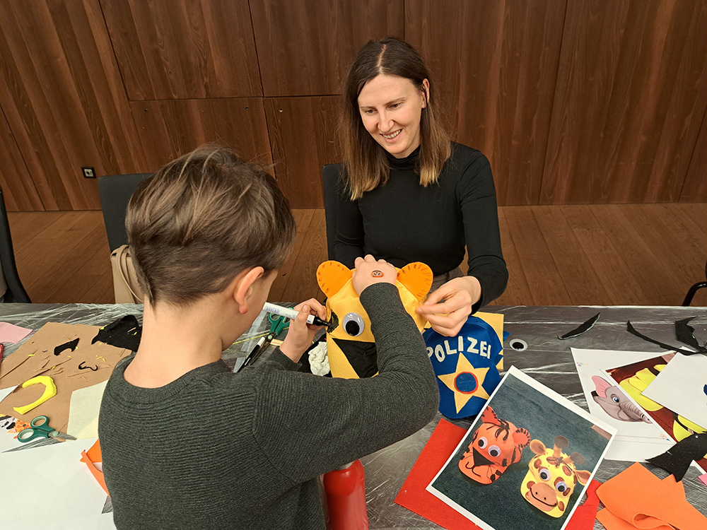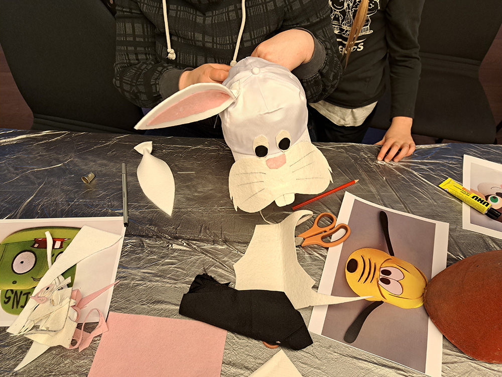 Ausgehend von farbigen Basiskappen entstanden unter Anleitung der Modistinnen ganz individuelle Kopfbedeckungen – nach Vorlagen oder frei nach der eigenen Fantasie. Mit etwas Filz, Kleber, Schere und viel Kreativität wurde die Mission „Vorbereitung für den Fasching“ erfolgreich abgeschlossen!