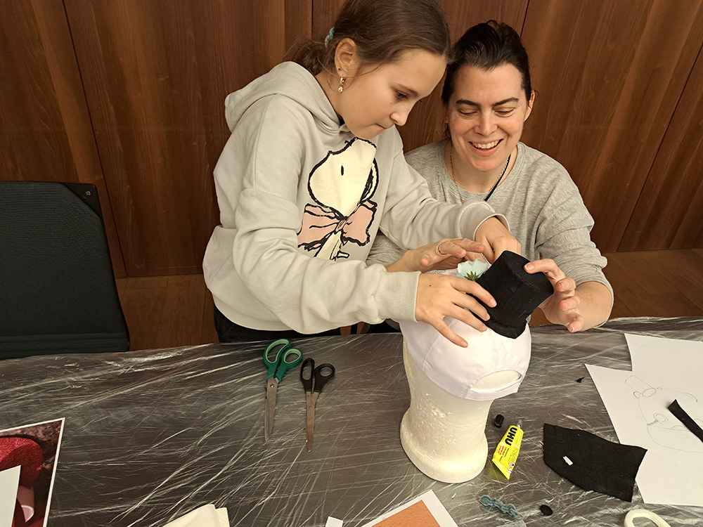 Diese Gedanken standen auch Pate für den Workshop „Hutwerkstatt“. Die Modistinnen Dido Victoria Sargent und Margot Schützeneder öffneten in einem Workshop für die ganze Familie ein kleines Fenster in die Welt hinter den Kulissen des Theaters und der Werkstätten. Sie vermittelten anschaulich, was es bedeutet, als Modistin Kopfbedeckungen für Theaterproduktionen herzustellen.